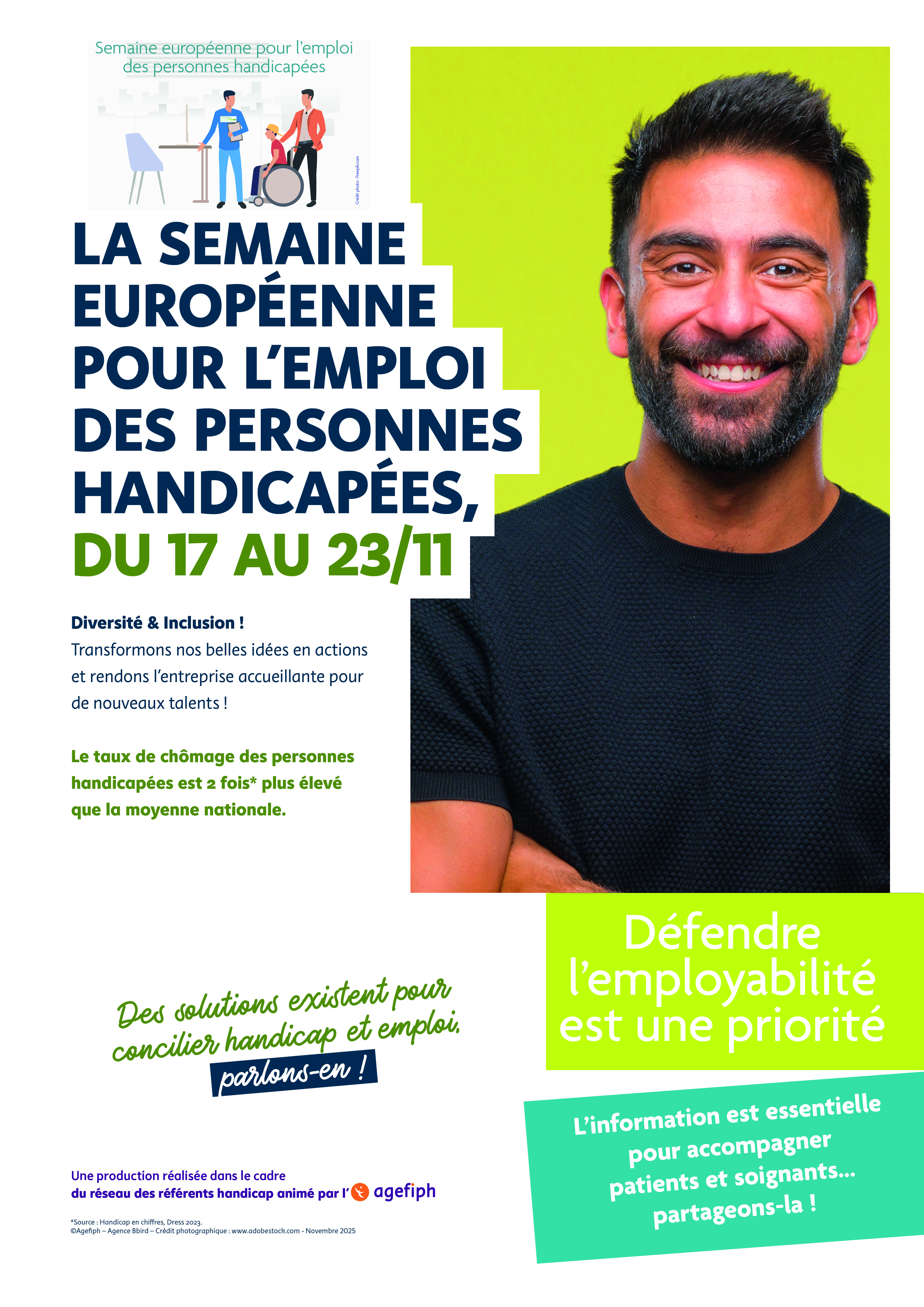 Depuis plusieurs années, nous sommes engagés à employer des personnes en situation de handicap. C’est pourquoi nous relayons la campagne de l’Agefiph sur la semaine européenne soutenant l’emploi des personnes handicapées.